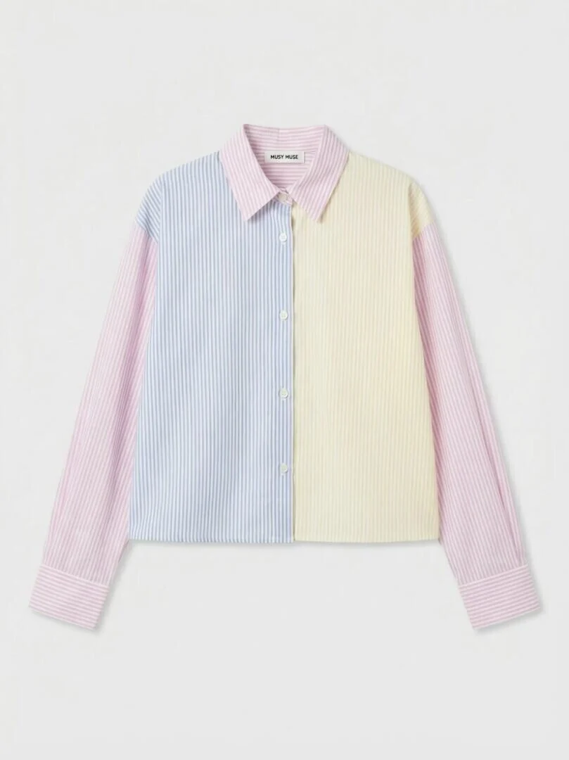 Blouse multicolore à dos ouvert.