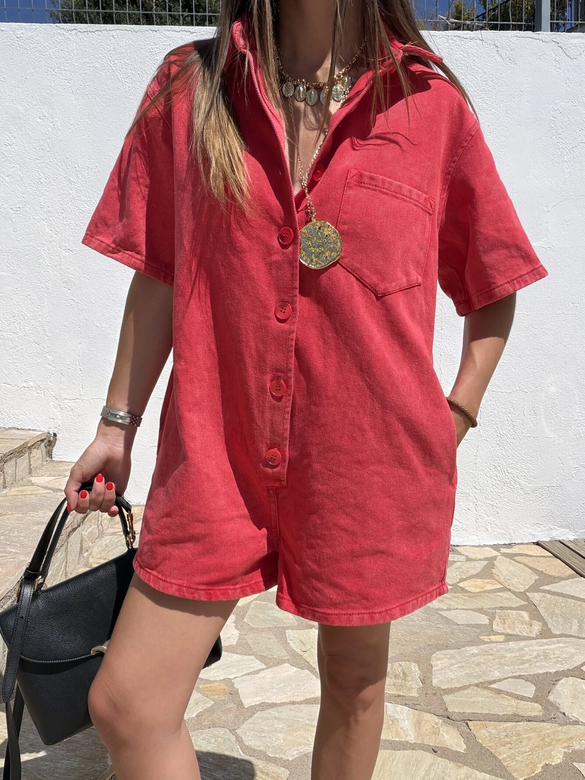 Combishort en coton rouge