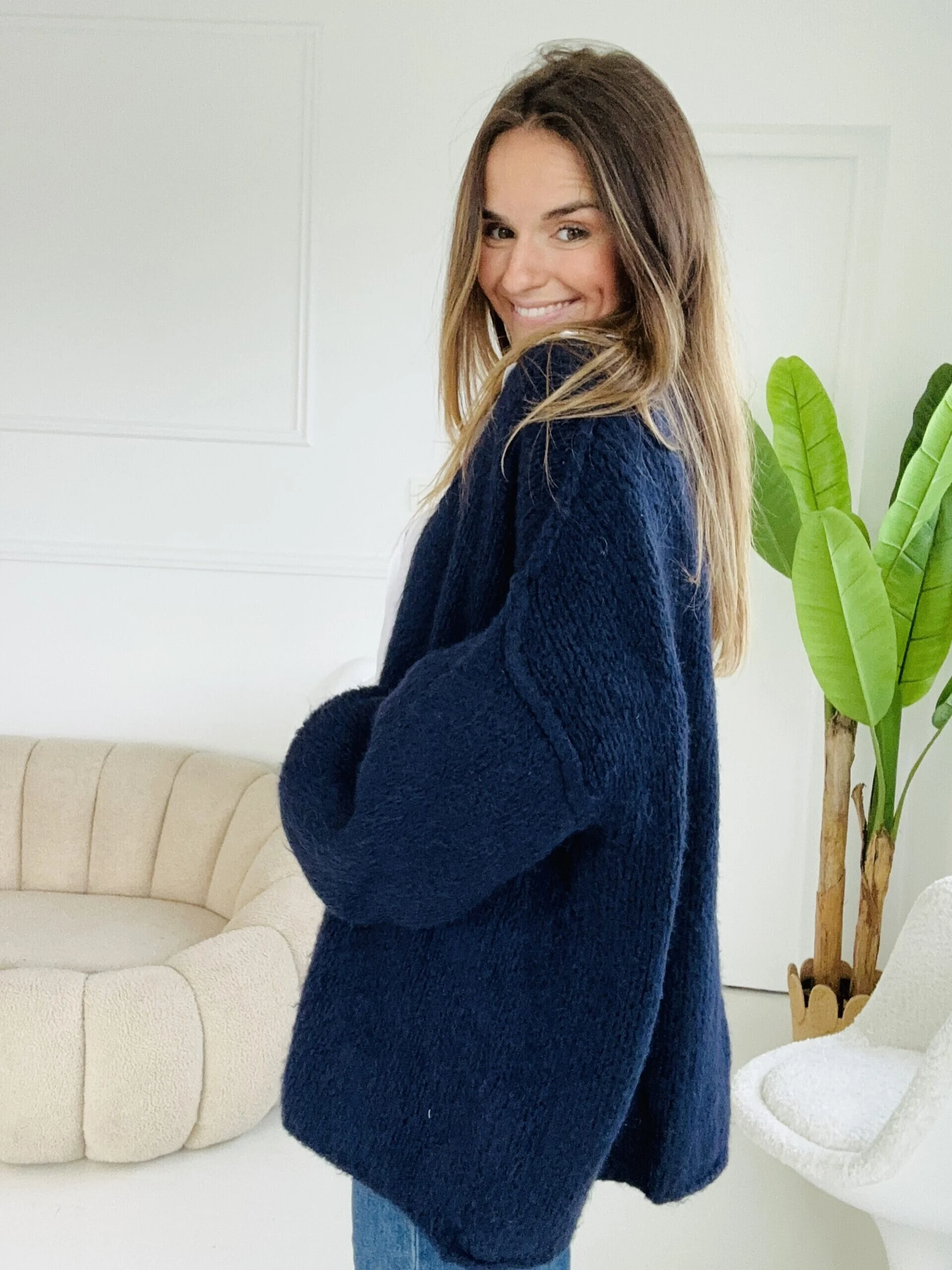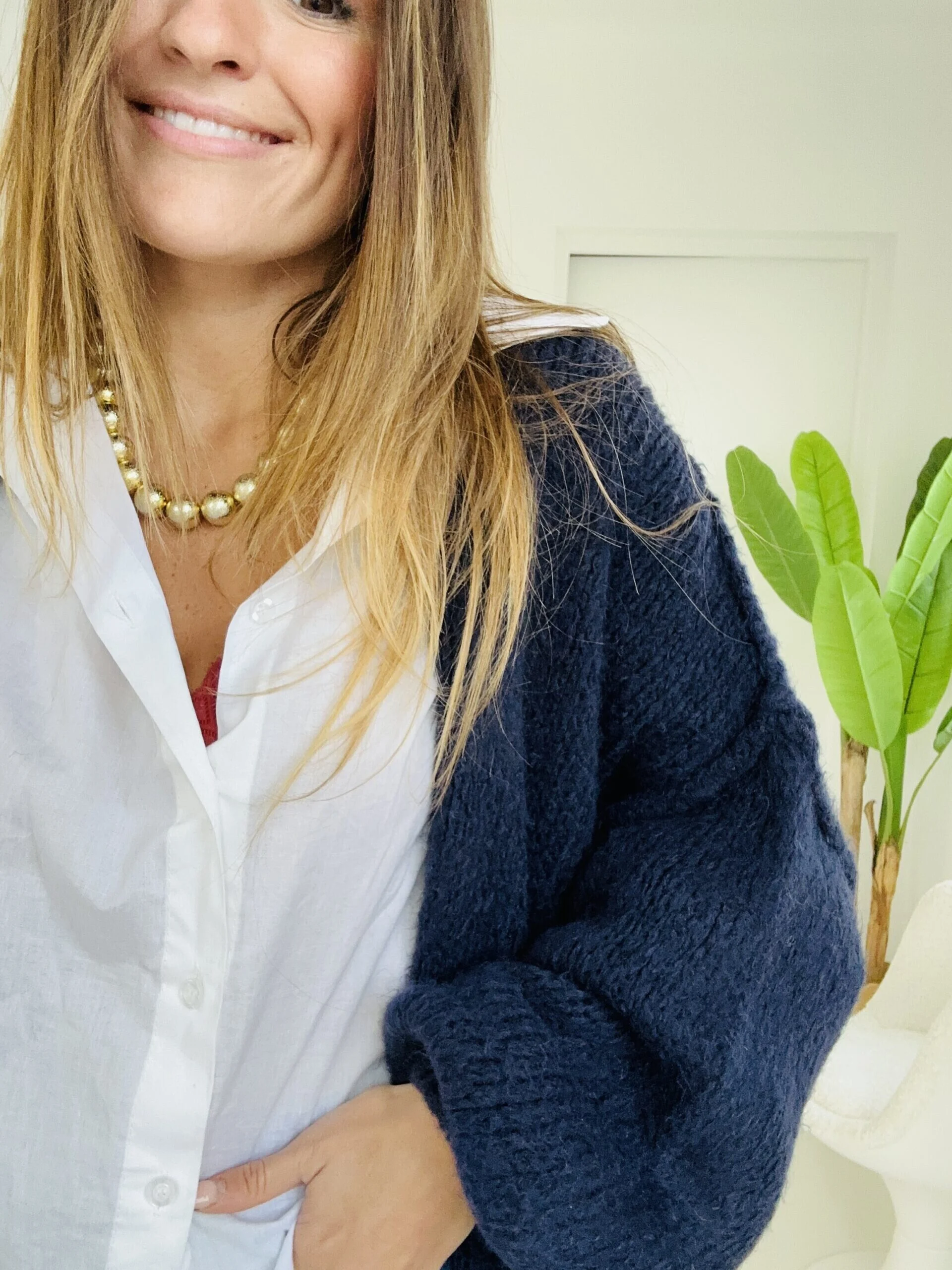 Gilet oversize marine détail coutures apparentes sur l’amanchure.