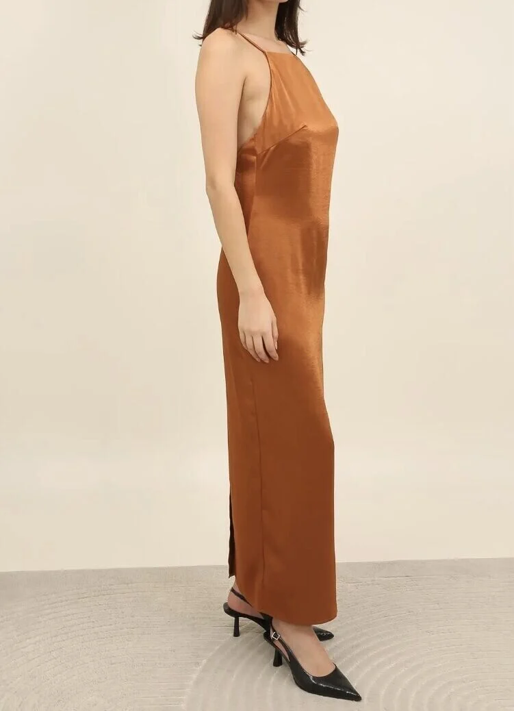 Magnifique robe bronze dos nus avec bijoux amovible (idéal pour le lavage).
