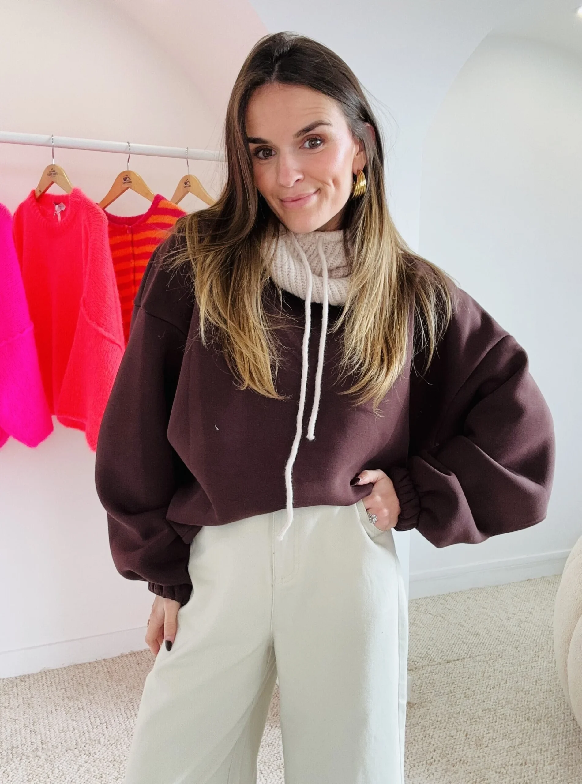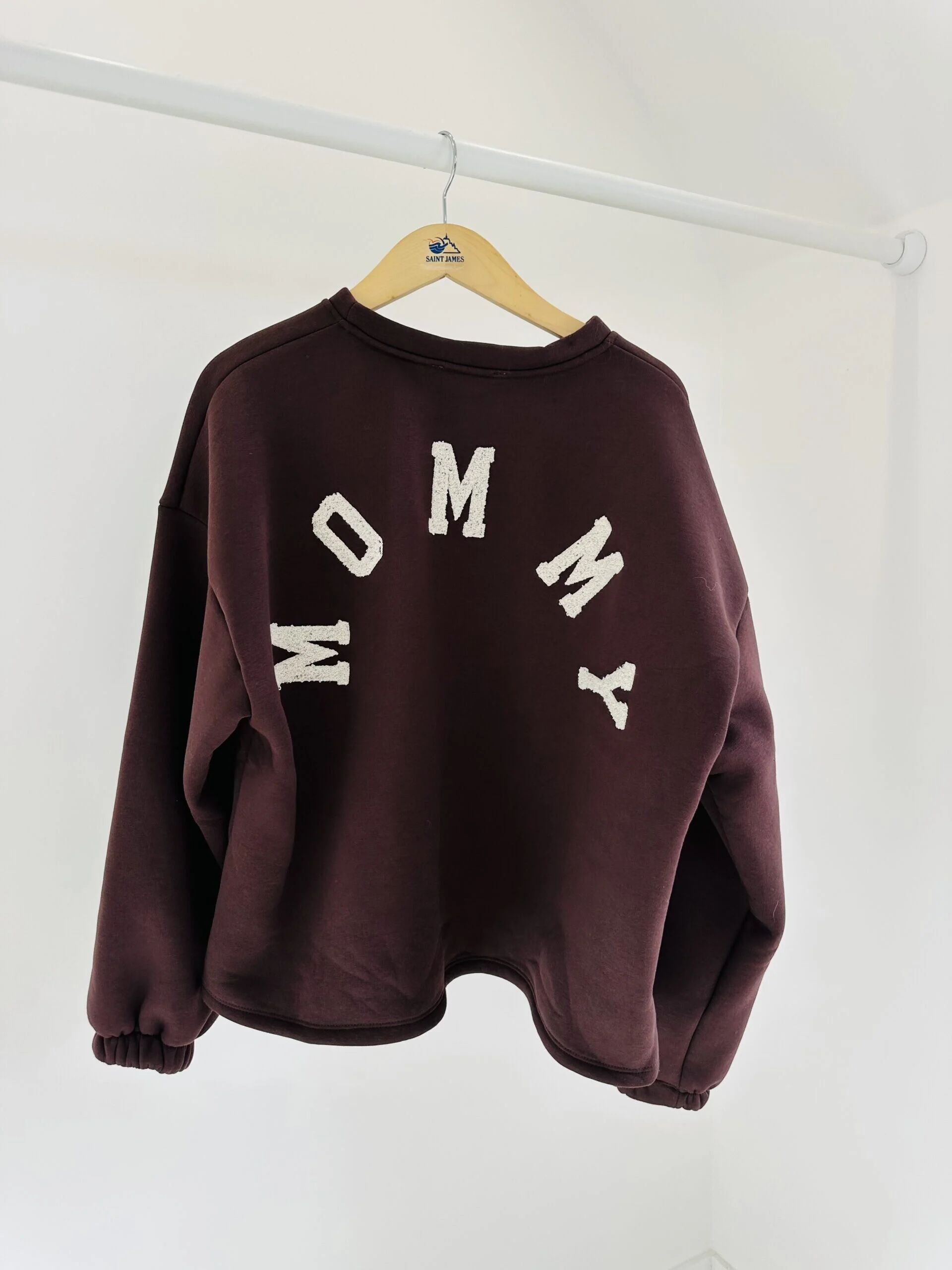 Sweat oversize, chocolat avec l’inscription « Mommy » dans le dos.