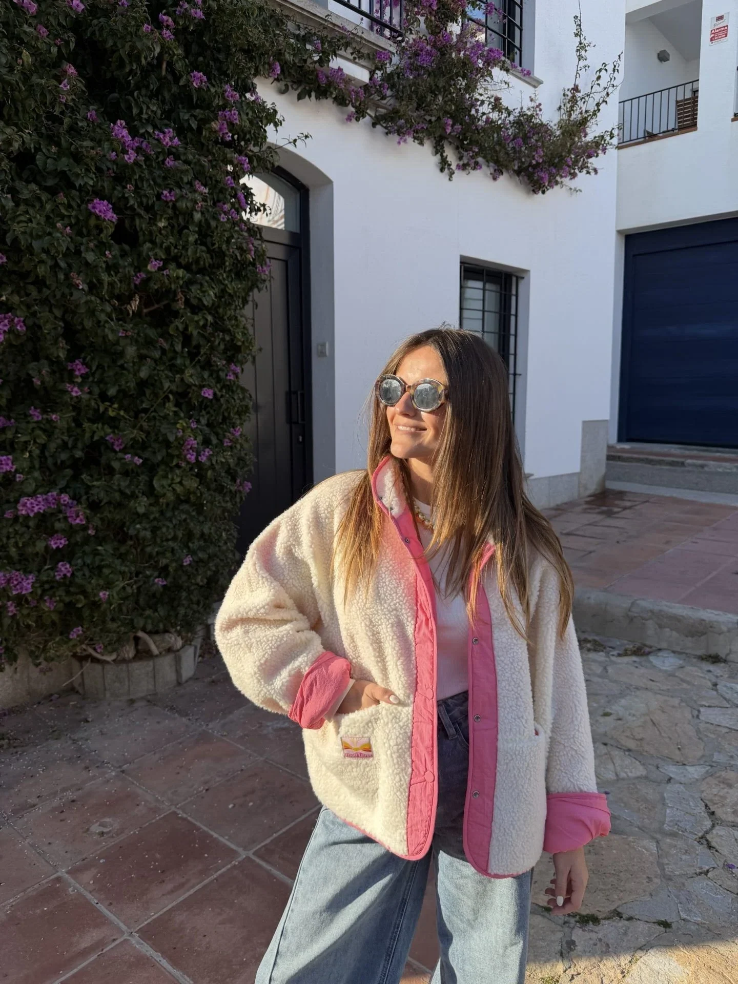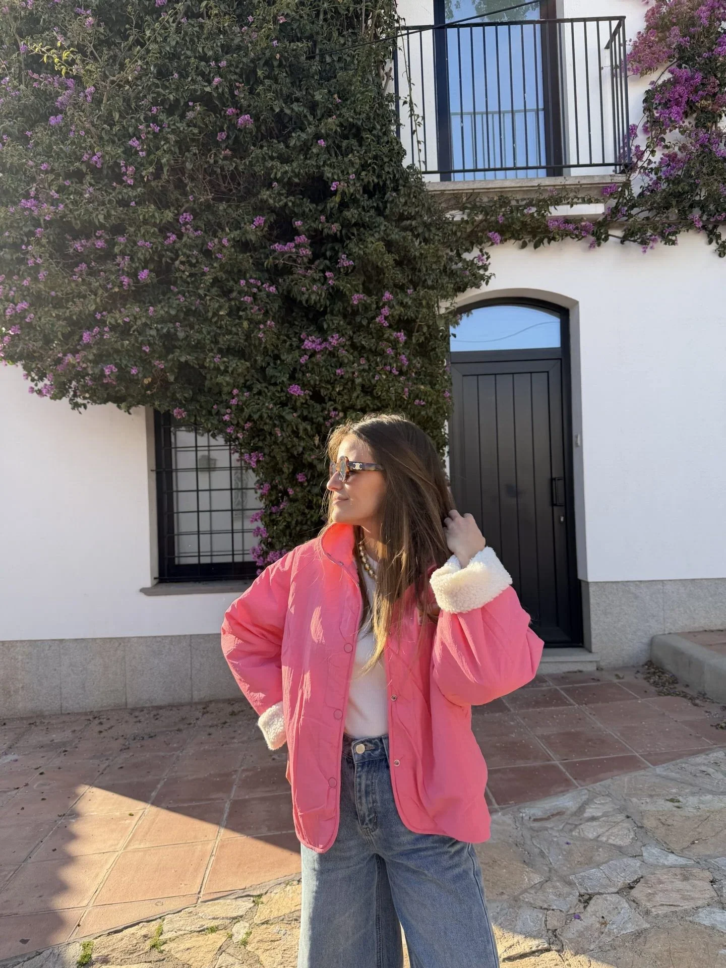 Veste réversible : un coté rose matelassé pour un look casual, un coté moumoute douce pour une allure cocooning. Deux styles en une seule pièce !
